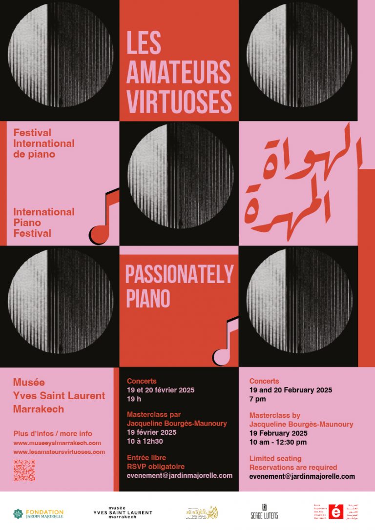 Pour cette édition, deux concerts exceptionnels ainsi qu’une masterclass inédite dirigée par la pianiste Jacqueline Bourgès-Maunoury viendront rythmer ces deux journées musicales au cœur de Musée YVES SAINT LAURENT Marrakech.