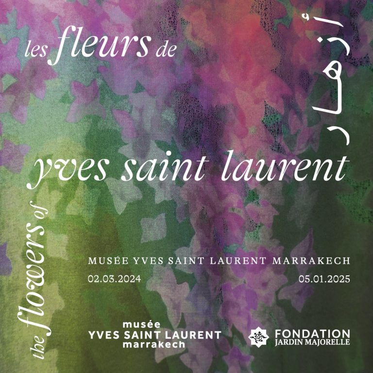 Le Musée YVES SAINT LAURENT Marrakech (mYSLm) se réjouit de l’ouverture de l’exposition Les Fleurs d’Yves Saint Laurent le 2 mars 2024, qui célébrera le septième anniversaire du musée Yves Saint Laurent Marrakech et du musée Yves Saint Laurent Paris, en octobre 2024. Pour la première fois, les deux musées vont concevoir et réaliser un projet commun d’exposition et de publication sous le commissariat de Gaël Mamine et d’Olivier Saillard.