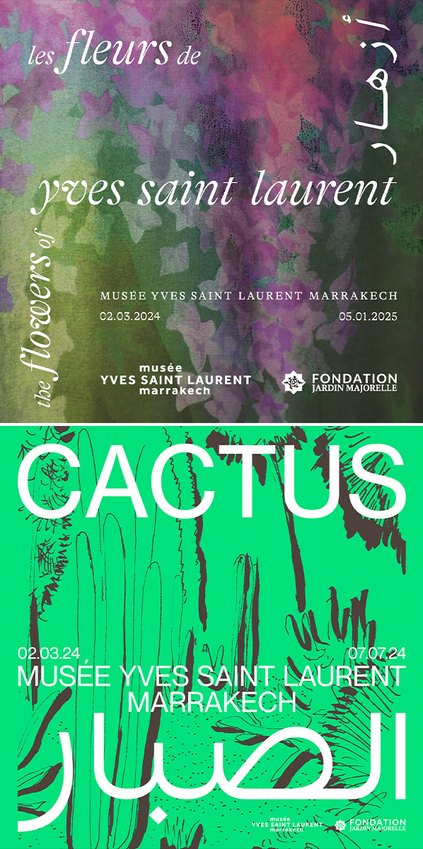 Le Musée YVES SAINT LAURENT Marrakech (mYSLm) se réjouit de l’ouverture prochaine de deux exposition «Les fleurs d’Yves Saint Laurent» et «Cactus» le 2 mars 2024 :